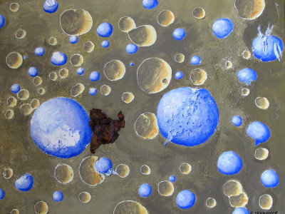 Die Betrachtung von Gegebenheiten in der Dimension Mikrokosmos bringt eine Welt zu Tage, die uns staunen läßt. Ein immer wieder faszinierendes Gefüge von Farbe und Form, worauf hier malerisch reflektiert wird.